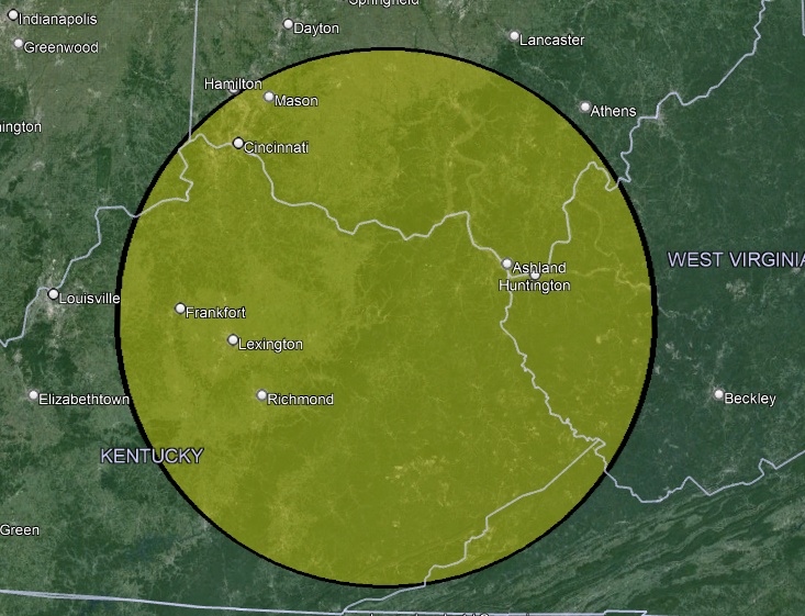 100 MILE RADIUS OF MOREHEAD, KY