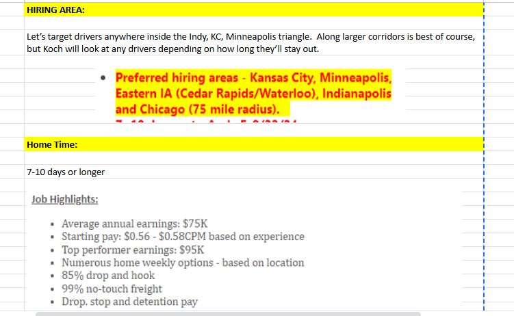 | Hiring Areas | See “Regional Dry Van” tab in the information file |
