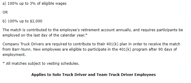 DOT physical and drug screens (at Barr-Nunn’s expense)