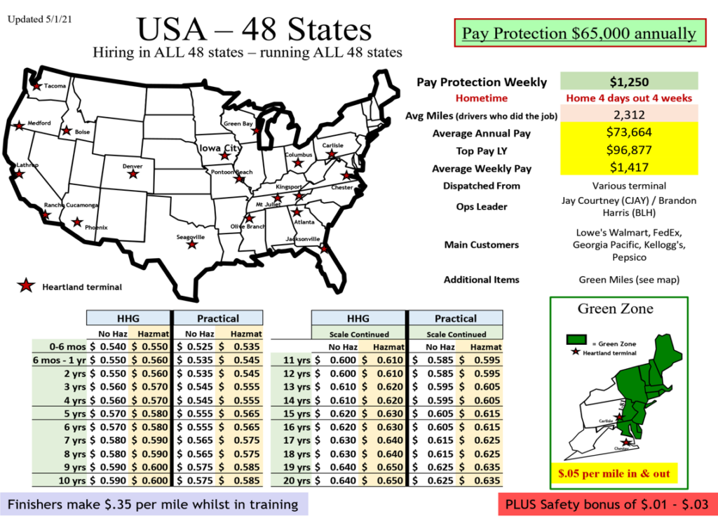| Safety Bonus | $0.01 cpm; paid annually Based on driving accident (preventable) free Up to $0.03 cpm after multiple years of safer driving |