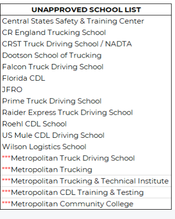 CHECK THIS LIST FOR THE TRUCKING SCHOOL YOUR DRIVER ATTENDED