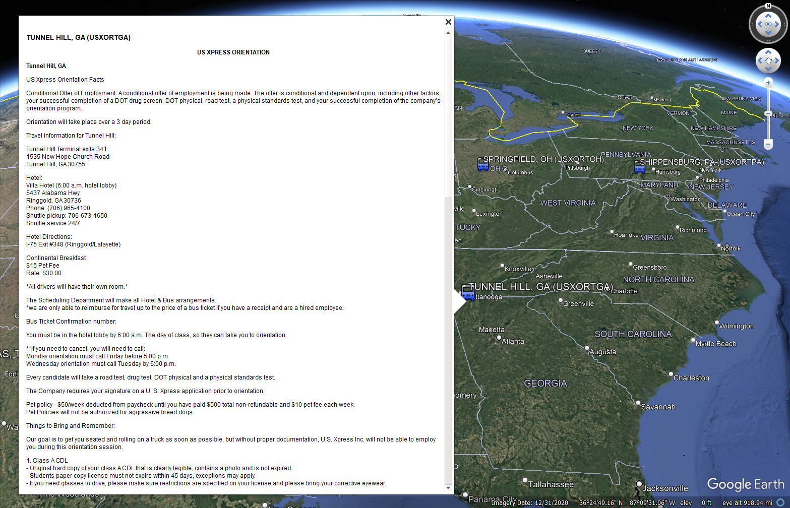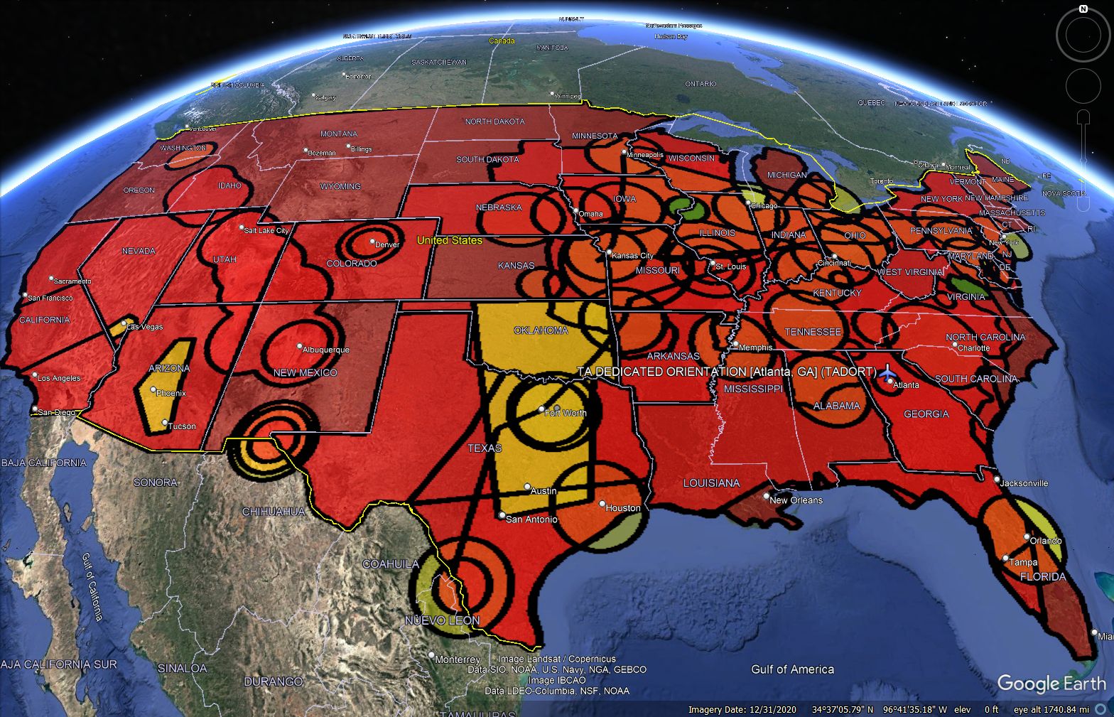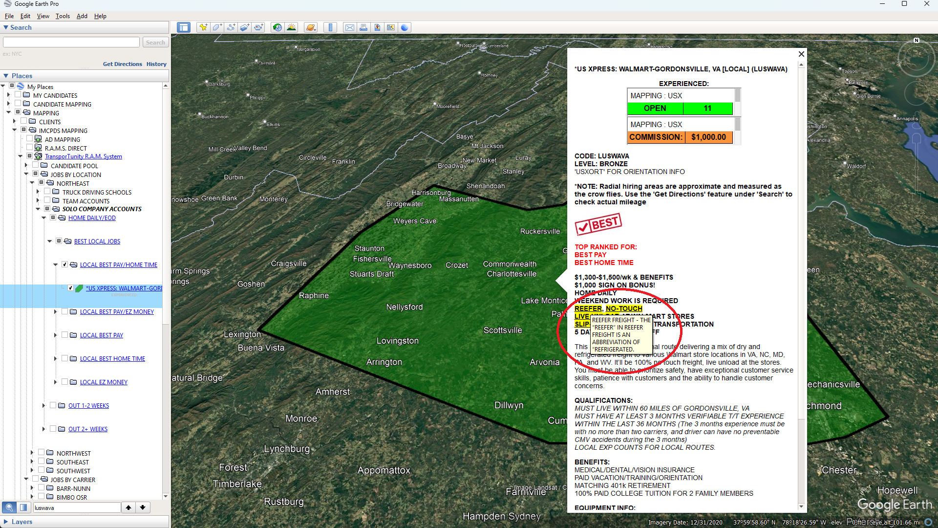 Your subscription to the Google Earth Pro-based Recruiter Account Mapping System provides real-time tracking of the carriers you choose for your entire office, including: