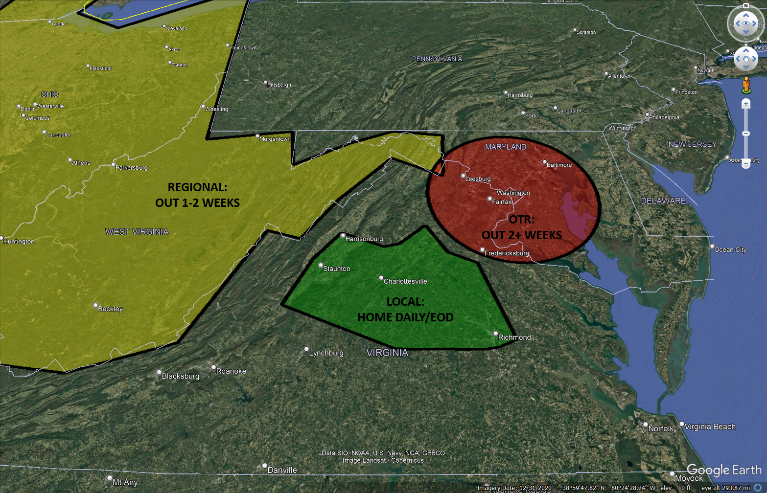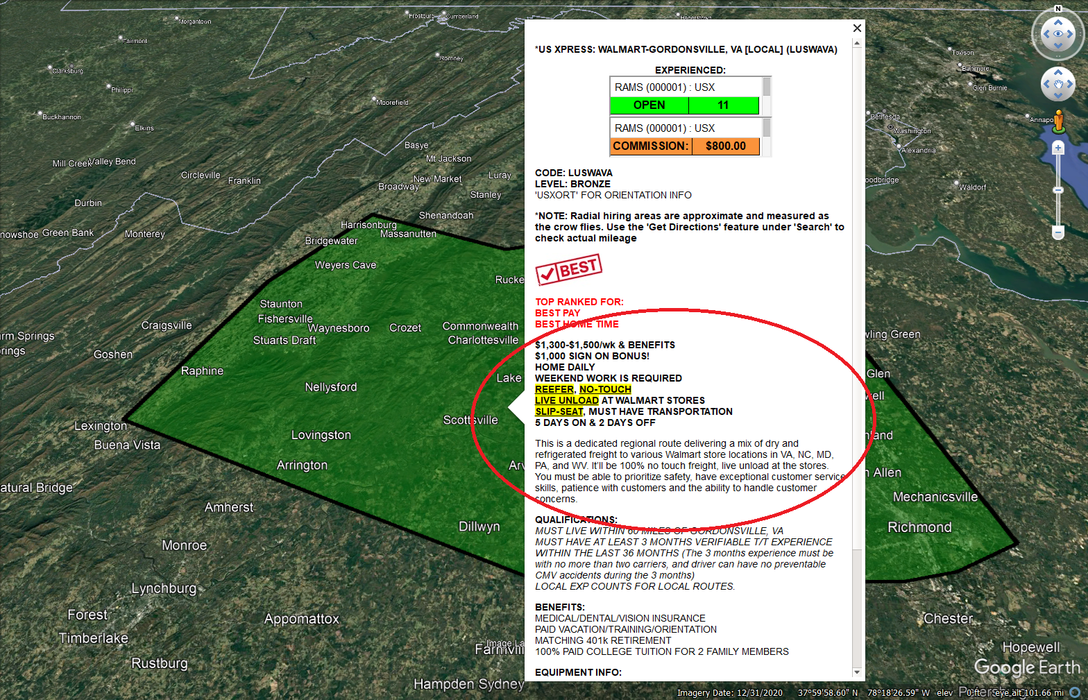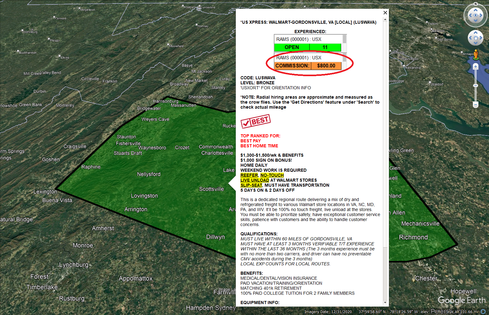 Your subscription to the Google Earth Pro-based Recruiter Account Mapping System provides real-time tracking of the carriers you choose for your entire office, including: