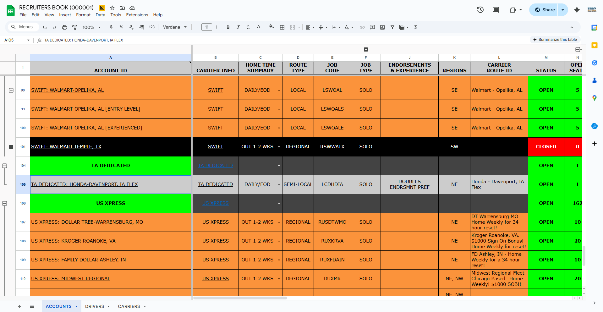 The base subscription price includes 1-month of access to the Recruiter Account Mapping System for up to 3 of our partner carriers and all the jobs we have for those carriers in our system. If we’re not already tracking the specific jobs you need, just let us know and we’ll add them! Each subscription allows for up to 5 new job additions per month per subscription. Our a la carte pricing allows you to add as many carriers as you like, and the more you add the more you save! Be sure to list your desired carriers in the NOTES section of the shopping cart! We’ll even have you pick an alternate carrier in case one of your primary choices suspends recruiting.