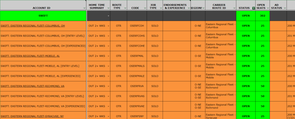 Included with the Google Earth Pro-based mapping system is a Google Sheet that displays all the information for your carriers and jobs in a spreadsheet format that is both searchable and filterable. The Account ID’s and Job Codes in the spreadsheet can quickly and easily be pulled up in the mapping system, allowing the two resources to work seamlessly hand-in-hand. This will save you and your recruiters invaluable time, allowing everyone to focus on the activities that result directly in getting drivers hired!